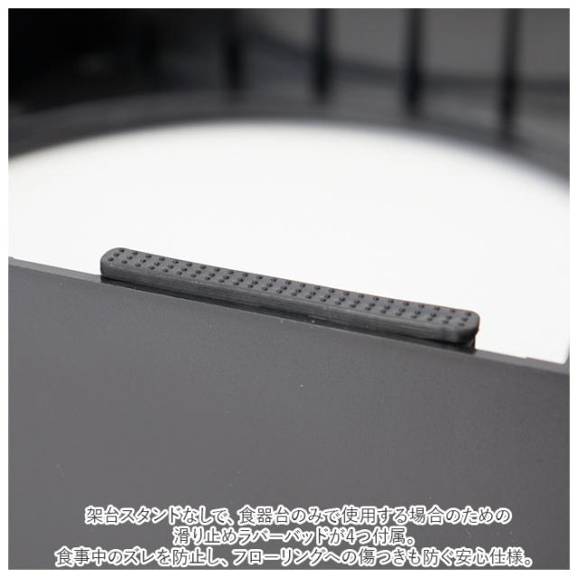 | 商品説明 | ・大型のワンちゃんでも首を屈めず、快適お食事タイム♪高さ調節自在「3WAYペット用食器台」が新登場。 2つのフードボウルと食器台に、2本の架台スタンドを合わせたシンプルなペット用食器台セット。 ・「縦向き」・「横向き」、架台スタンドのセット方向によって、食器台の高さを2段階に調節可能。さらに、スタンドを取り外せばオーソドックスな食器台としてマルチに使える3WAY仕様。 ・ペットの身体の大きさに合わせて自在に高さ調節ができるため、普段前かがみの姿勢でフードを食べている愛犬の身体への負担を軽減。頭の位置が高い大型犬にはもちろん、シニアや病気で治療中のワンちゃんにも最適。 ・フードボウルは軽くて丈夫、お手入れのしやすいステンレス素材を採用。適度な深さと大きさで、フードやお水がこぼれにくいたっぷり設計。 ・ボウル部分が簡単に切り離せるセパレートタイプなので、フードボウルがこまめに洗浄できて、いつも清潔。 ・2つのフードボールがセットされた食器台に、2本の架台スタンドを差し込むだけで組み立てもとっても簡単。(※架台スタンドを縦向きに使用するときは食器台の左右、横向きに使用するときは前後にセットします。) ・架台スタンドなしで、食器台のみで使用する場合のための滑り止めラバーバッドが4つ付属。食事中のズレを防止し、フローリングへの傷つきも防ぐ安心仕様。 ・これ1台で小型犬から大型犬までマルチに対応。フロントの肉球マークがデザインのチャームポイント。 |