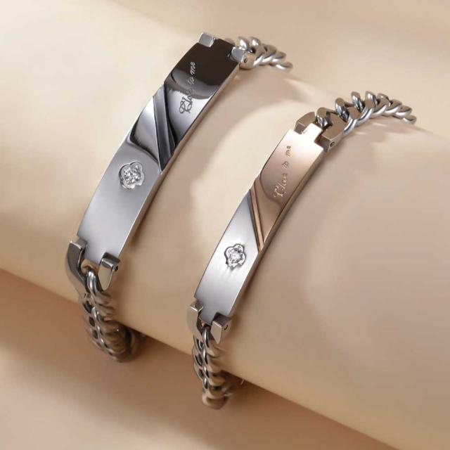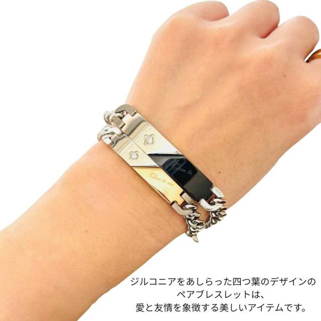 新作 サージカルステンレス ペアブレスレット 金アレ 対応 カップル 2本セット お揃い ジルコニア四つ葉 プレート 喜平チェーンブレス ペア メンズ レディース おそろい ブラック ピンク 四つ葉のクローバー カジュアル 記念日 誕生日 彼女 彼氏へのクリスマス プレゼント