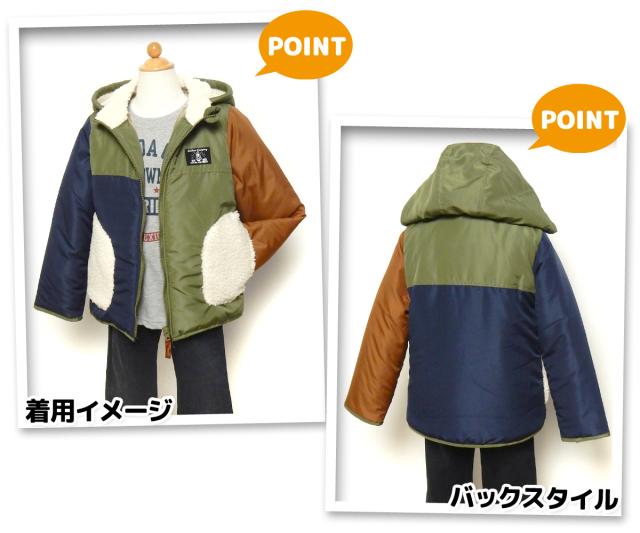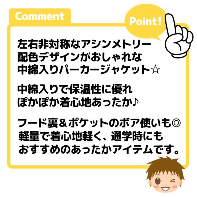 【送料無料】男児 キッズ 中綿 パーカー ジャケット フルジップ アウター あったか素材 保温性 軽量 アシンメトリー 配色切替 子供服 男の子 110cm 120cm 130cm nw-0963