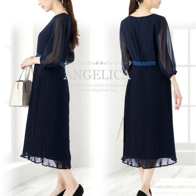 歩くたびにふわっと揺れるシフォン素材のプリーツワンピースは