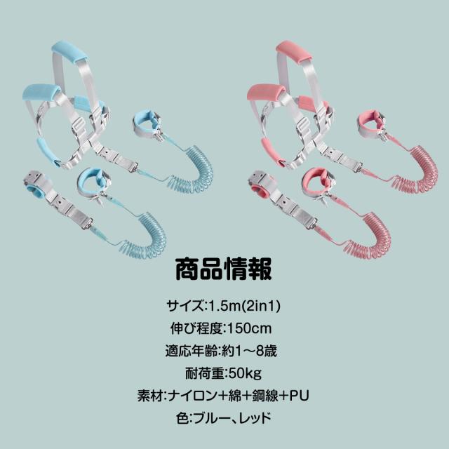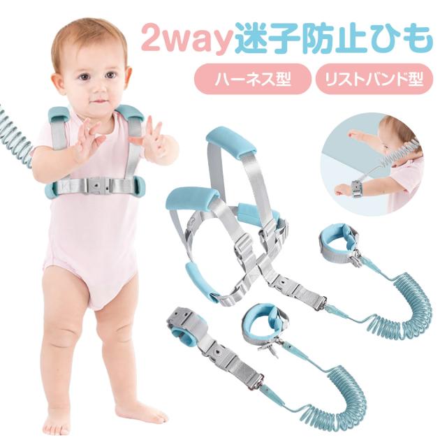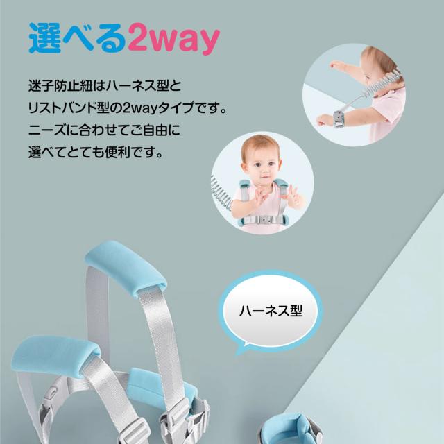 【選べる2way】迷子防止紐はハーネス型とリストバンド型の2wayタイプです。ニーズに合わせてご自由に選べて、とても便利です。