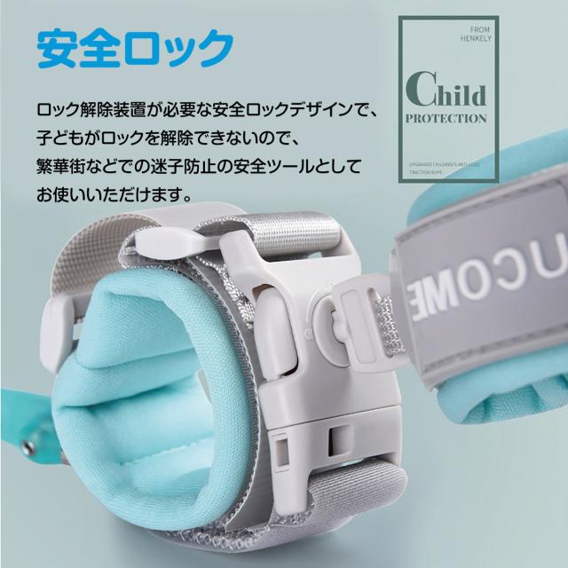 【安全ロック】ロック解除装置が必要な安全なロックデザインで、子供がロックを解除できないので、繁華街などでの迷子防止の安全ツールとしてお使いいただけます。