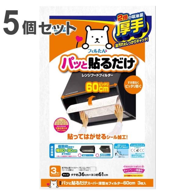 レンジフードフィルター パッと貼るだけスーパー深型用フィルター 深型 36×61cm 3枚入 5個セット ( 日本製 レンジフィルター レンジフードカバー 換気扇フィルター 換気扇カバー )