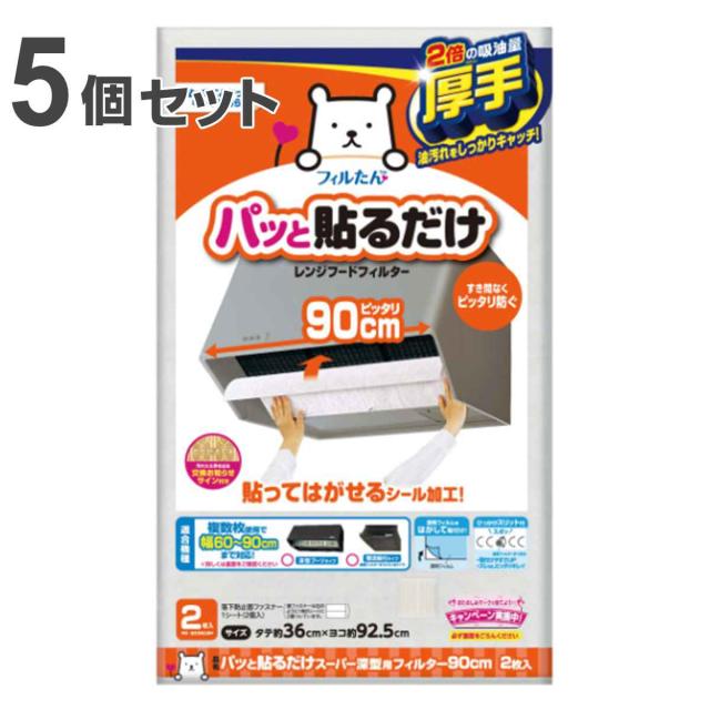 レンジフードフィルター パッと貼るだけスーパー深型フィルター 厚手 36×92.5cm 2枚入 5個セット ( 日本製 レンジフィルター レンジフードカバー 換気扇フィルター 換気扇カバー キッチン用品 レンジフード用 ワンタッチ )