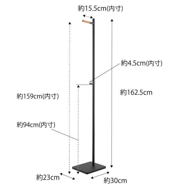 | サイズ | 約 幅23×奥行30×高さ162.5(cm) 【内寸】 上部フック 長さ:約15.5cm、地面からの高さ:159cm 中部フック 長さ:4.5cm、地面からの高さ:94cm |