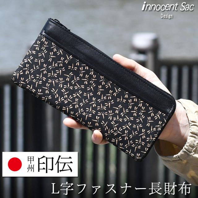 L字ファスナー長財布 甲州印伝 印伝 イノセントサック 鹿革 国産牛革 トンボ柄 漆付け 漆 長財布 L字ファスナー L字財布 Lジップ 和財布 和柄 蜻蛉 とんぼ YKK slim スリム 束入れ 札入れ 小銭入れ innocent Sac 本革 本革財布 日本製 レザー レディース 送料無料