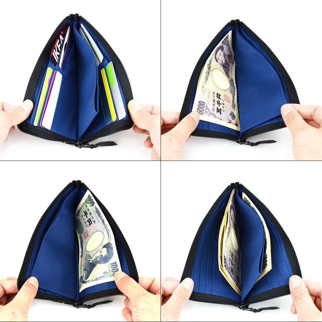 ファスナーを開くと、左右にサイドポケットが2つと12枚分のカードポケットが並びます。中央のオープンポケットは、小銭入れやレシートの保管スペースとしての使用が可能。ポケットを中仕切りとした、両側のスペースにはお札を入れることができます。外側のフリーポケットは、切符、チケットなどを保管しておくと出し入れがスムーズに。目的に応じて収納場所を自由に選べるところがこのお財布の魅力です。