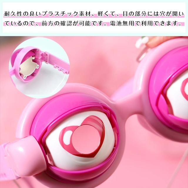 ●耐久性の良いプラスチック素材、軽くて、目の部分には穴が開いているので、前方の確認が可能です。電池無用で利用できます。