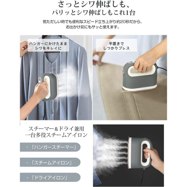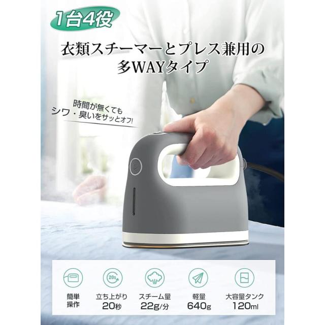 スチームアイロン ハンガーにかけたまま ドライアイロン プレス機能 シワ伸ばし 時短20秒 120ml大容量タン 連続スチーム 除菌 脱臭 小型 携帯用 旅行 送料無料