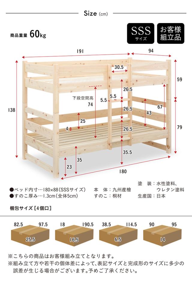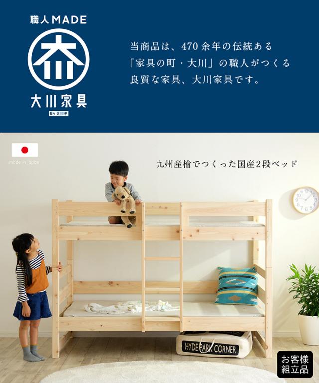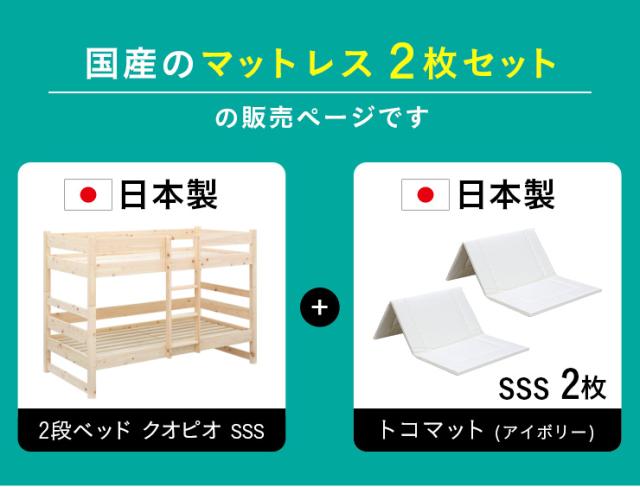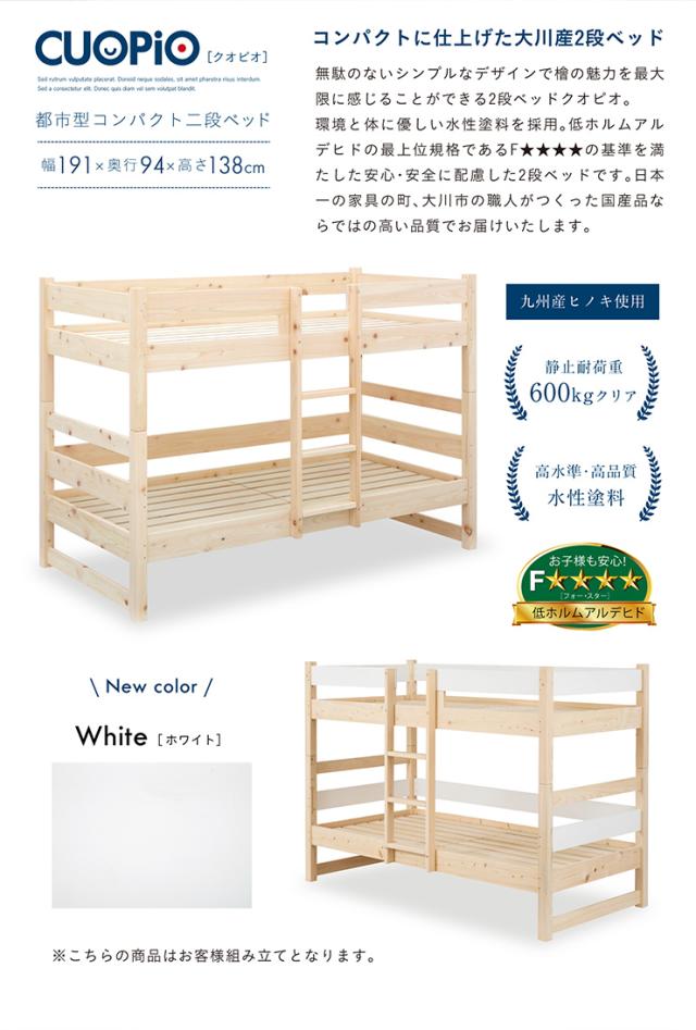 【日本製マットレス付き】5年保証 国産 コンパクト 二段ベッド 2段ベッド CUOPiO(クオピオ) SSS 2色対応 ヒノキ 檜 木製 二段ベット 2段ベット マットレスセット ロータイプ 子供用ベッド 九州産ひのき使用 おしゃれ