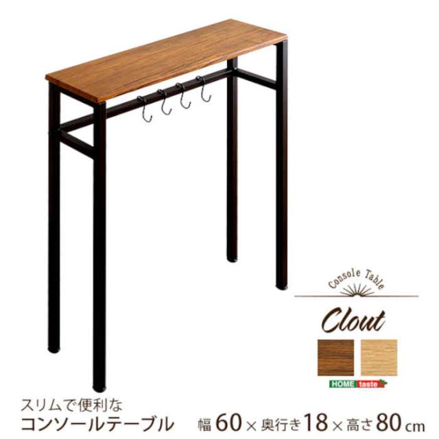 北海道・沖縄・離島配送不可 代引不可 コンソールテーブル 幅60×奥行18×高さ80cm 木目調 PVCシート スリム 省スペース インテリア 家具 リビング 玄関 ヴィンテージ風 Clout クラウト ホームテイスト CLT-60