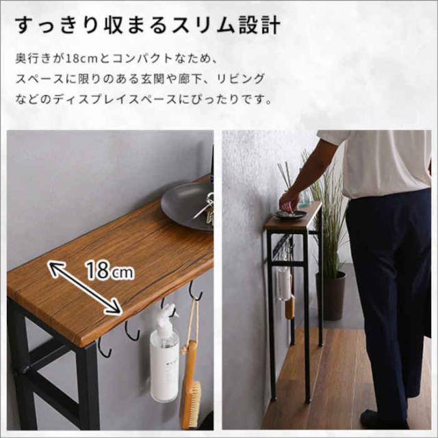 ■商品名:コンソールテーブル 幅60×奥行18×高さ80cm 木目調 PVCシート スリム 省スペース インテリア 家具 リビング 玄関 ヴィンテージ風 Clout クラウト