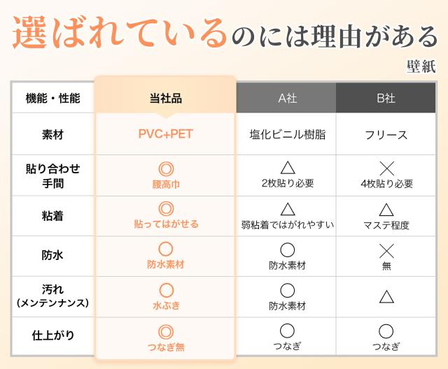 ●本来の目的以外の用途ではご使用にならないでください。また凹凸の大きい面や土壁のような特殊な壁面、大きな曲面には貼ることができません。 ●本製品をはがす場合、ゆっくりとはがしてください。べたつきが気になる場合は濡れたタオルで拭き取ってください。 ●高級家具、塩ビ系塗装、ニス系塗装、ラッカー塗装、海外品や天然塗りものなどにはご使用できません。(表面の状態が変わる恐れがあります) ●火のそばや、高温になるところではご使用できません。(耐熱温度約60℃) ●直射日光のあたる場所や、高温多湿になる場所での保管はおやめください。 ●本製品および包材を廃棄される際は、お住まいの自治体の取り決めに基づいた処理を行ってください。 ●不要になったはく離紙は滑りやすいのでご注意ください。 |