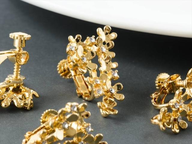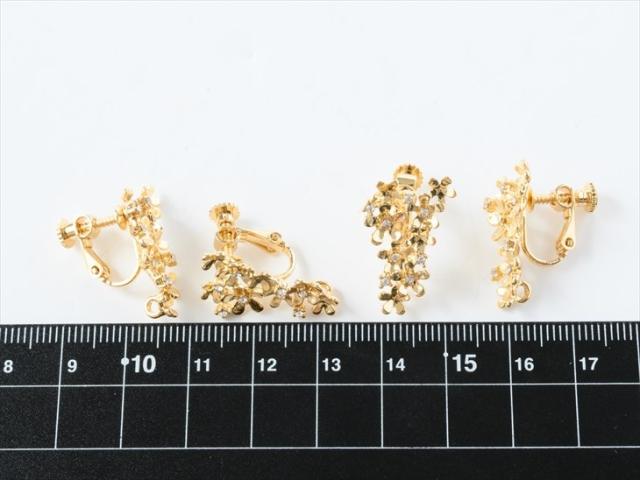 イヤリングパーツ ニッケルフリー 変色防止加工済 ブーケ アクセサリー パーツ ゴールド 23mm 10ペア ストーン付 金属アレルギー対応 問屋