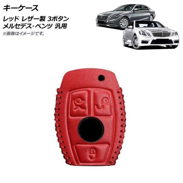 キーケース レッド レザー製 3ボタン メルセデス・ベンツ 汎用 AP-AS708-RD