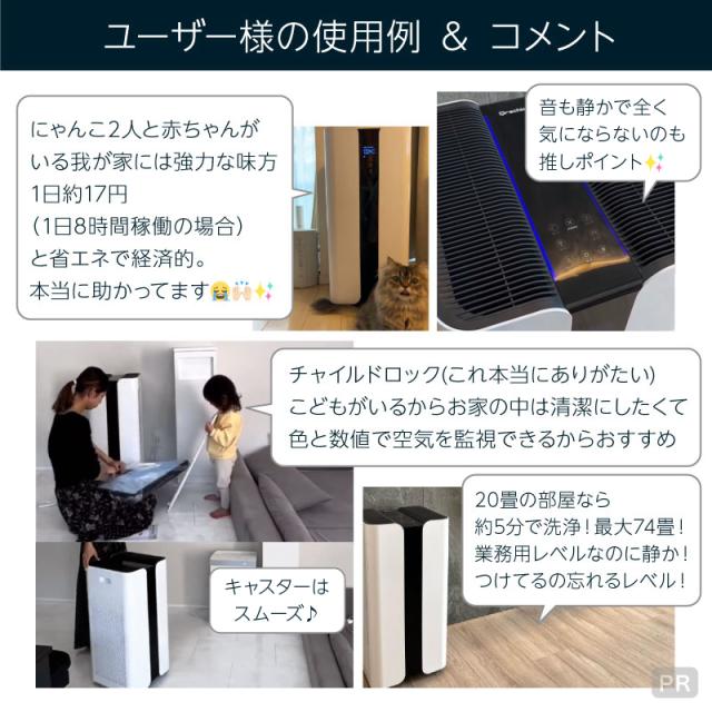 ハイパワー 大型 スピード 強力 清浄 空気質スキャン 高温多湿に強い日本向け仕様 最大74畳対応 4層 Wフィルター 両面 W吸引 PM2.5 風量オート 風量4段階調整 静音 設計 チャイルドロック タイマー スリープ 機能 タッチパネル リモコン キャスター 付き 高性能フィルター 空気質でライト変化
