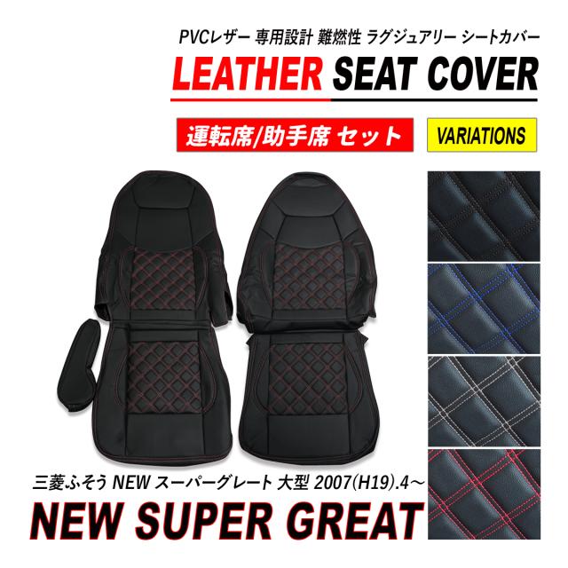 NEW スーパーグレート 大型 シートカバー PVC レザー 運転席 助手席 セット ダイヤカット キルト H19.4〜