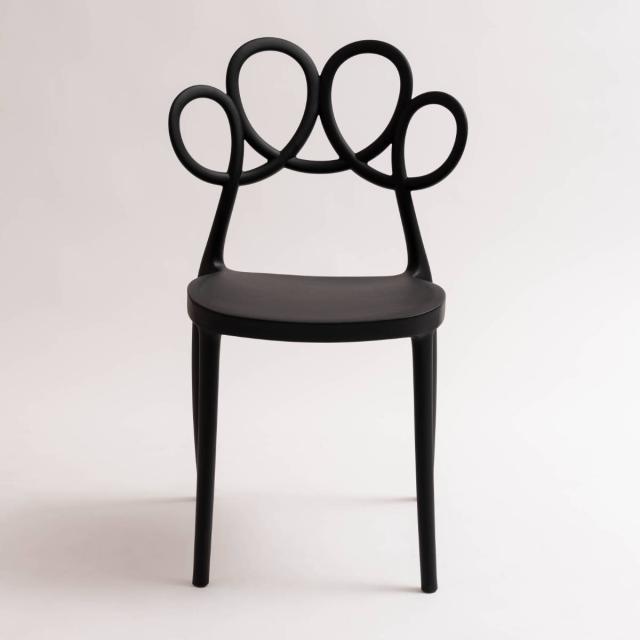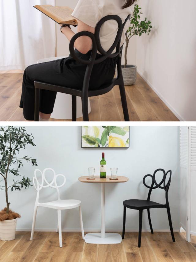背もたれはくるくると描いた一筆書きのようなデザインです。カフェや待合スペースなどにもおすすめです。