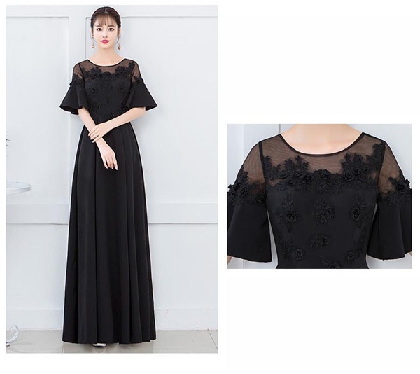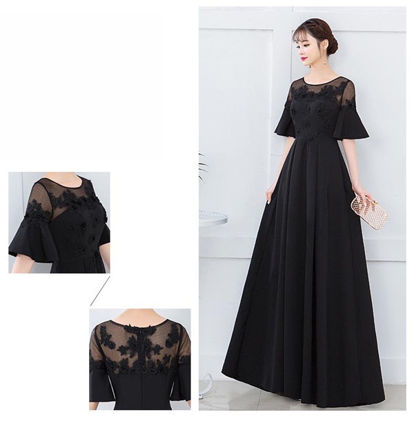 ロングドレス 演奏会 着痩せ パーティードレス ブラック 黒 レディース ロング丈 ドレス 結婚式 ワンピース フォーマル ドレス お呼ばれ 二次会 ピアノ 発表会 ドレス 演奏会 袖あり フォーマル ワンピース 結婚式 ドレス 大人 ピアノ 発表会 演奏会用ドレス 大きいサイズXS S M L XL 2XL 3XL 4XL 5XL 6XL dh035l6l6s1