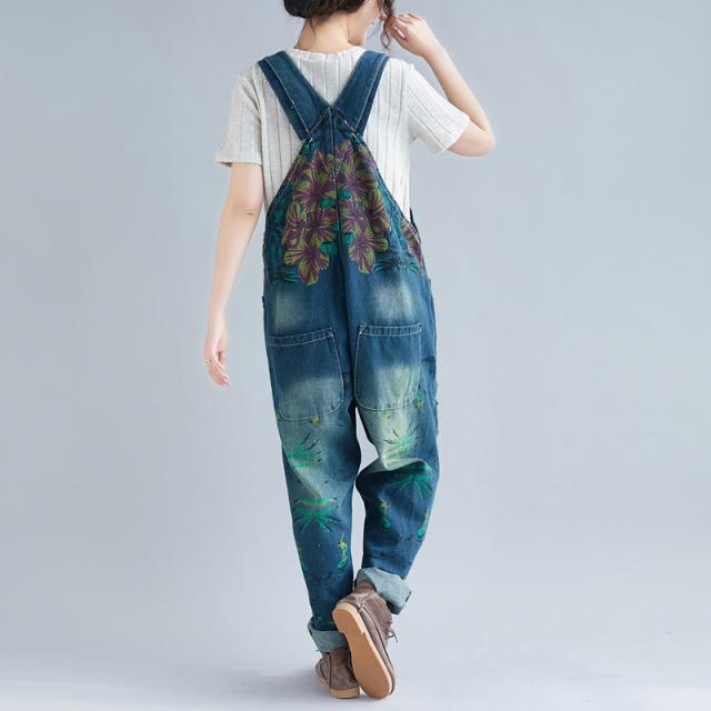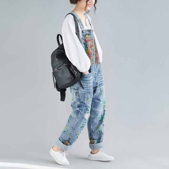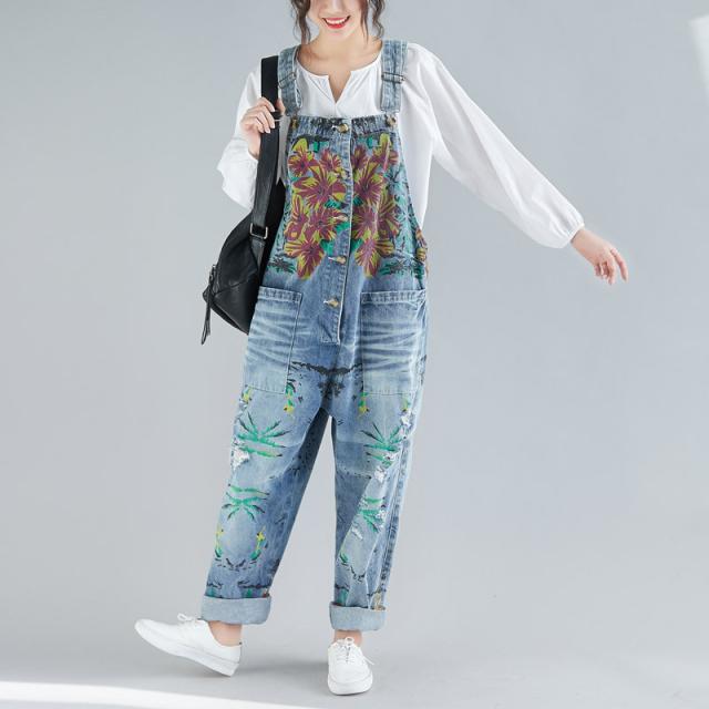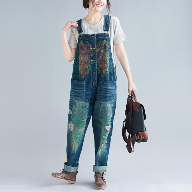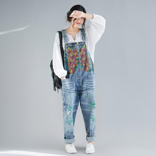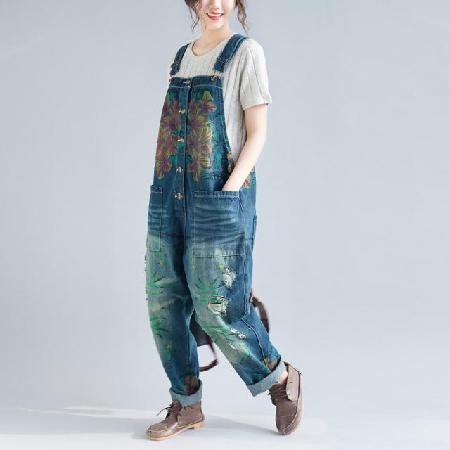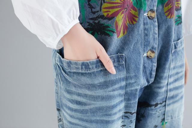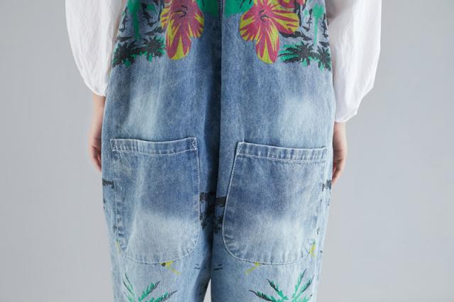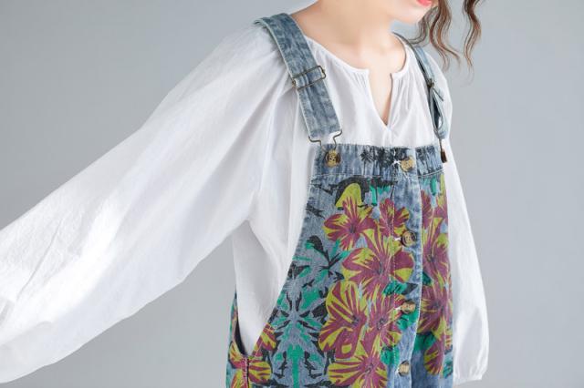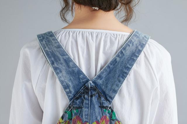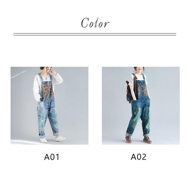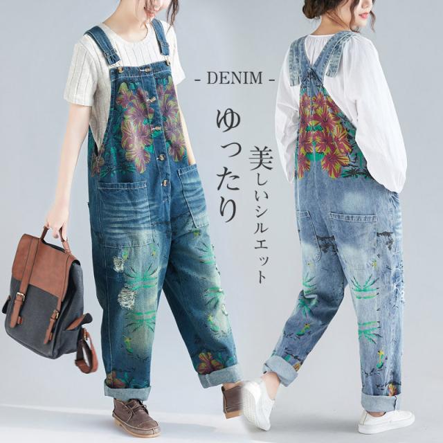 サロペット デニム オーバーオール レディース 刺繍 デニムワンピース デニムパンツ ワイドパンツ 大きいサイズ ロールアップ ベ