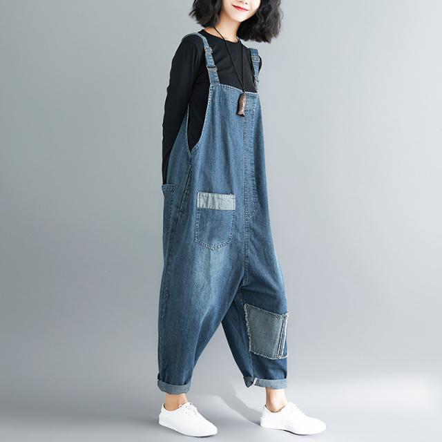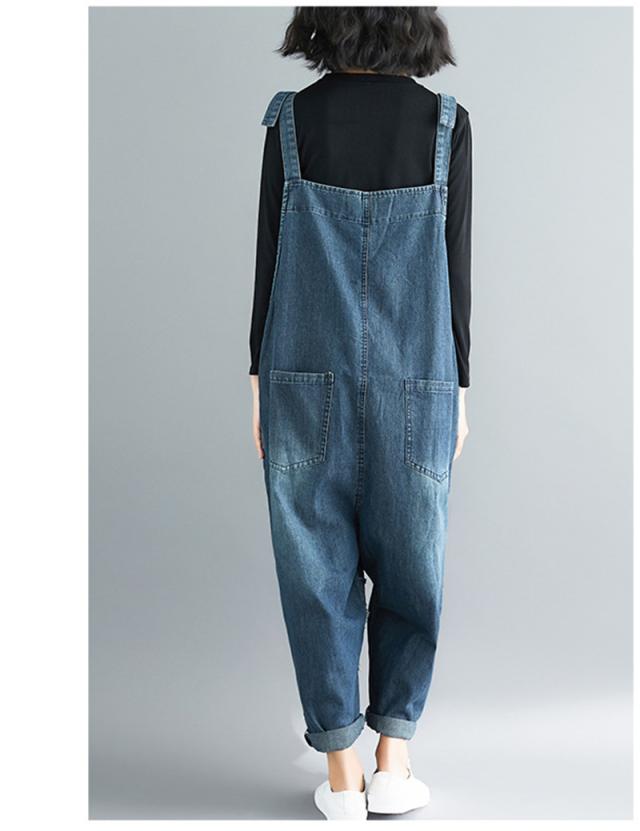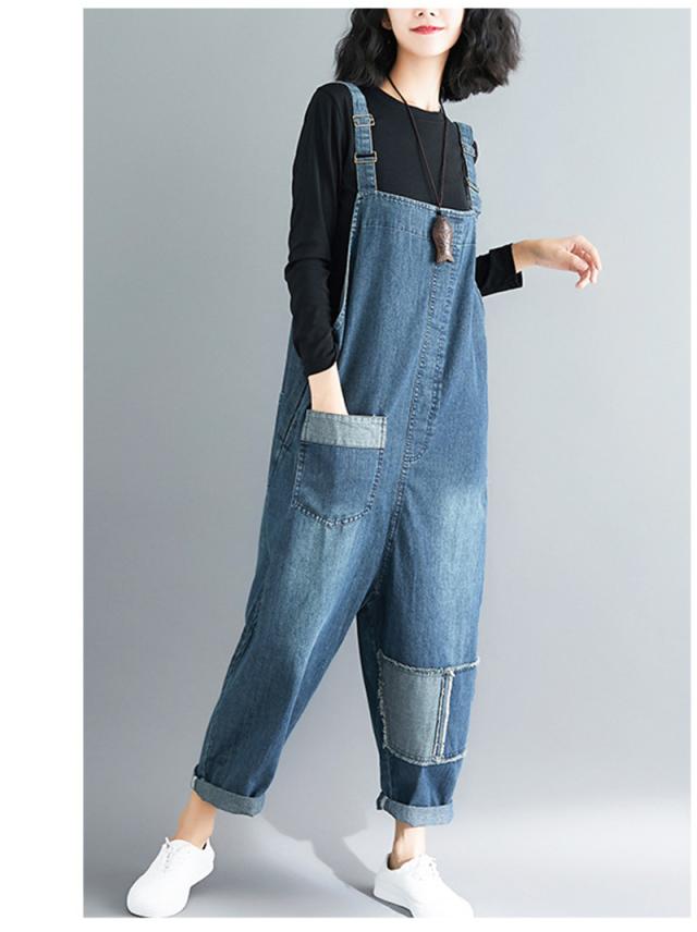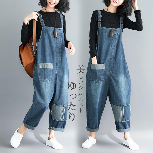サロペット デニム オーバーオール レディース デニムパンツ ゆったり 大きいサイズ 9分丈 女性用 パンツ ロングパンツ 体型カ