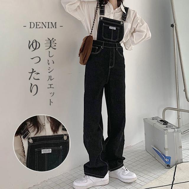 サロペット デニム オーバーオール レディース ダメージオーバーオール ジーンズ パンツ 小柄 春 夏 秋 20代 30代 40代