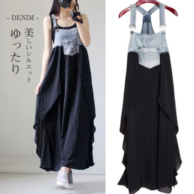 サロペット デニム オーバーオール レディース ジャンパースカート ロング 秋冬 コーデ ミセス 韓国 おしゃれ ファッション 高