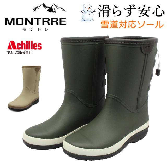 モントレ MONTRRE レディース 長靴 スノーブーツ FBW 1650 FB-165 レイン 防寒 防滑 防水 ハーフ丈 ファー 婦人靴 アキレス Achilles