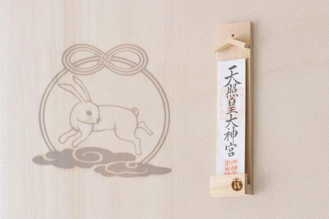 かんたん設置 壁掛け一社 白うさぎ 薄型 お札立て 簡易神棚 モダン 神棚 国産 焼印 壁掛け 一社