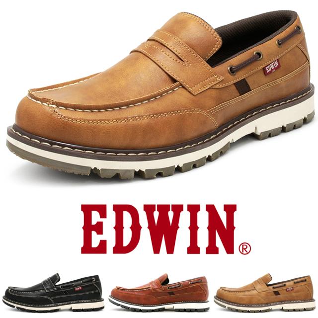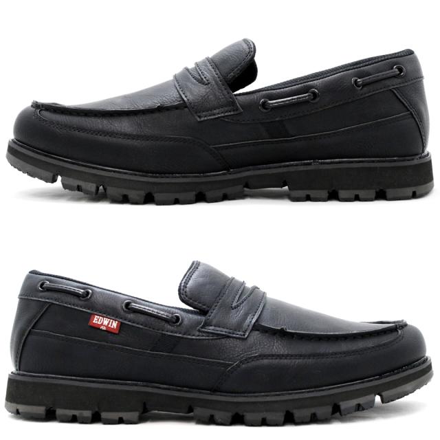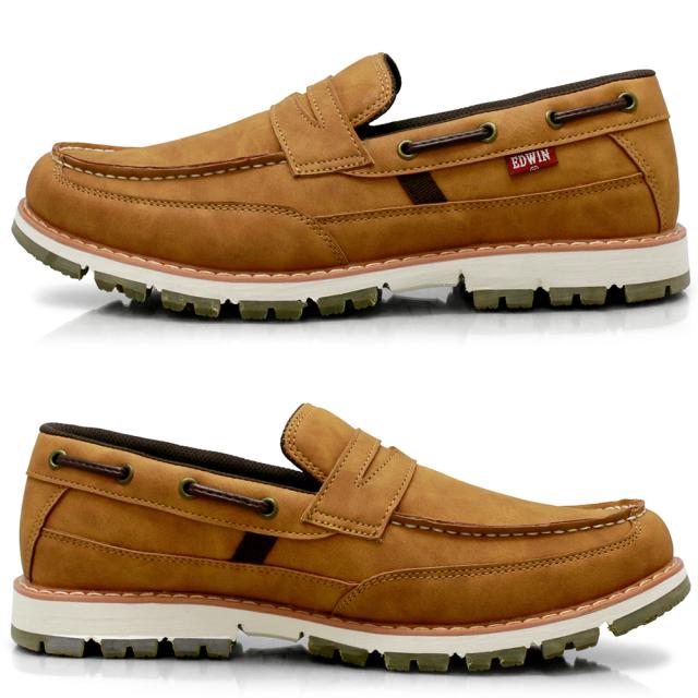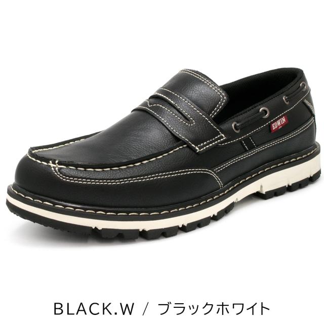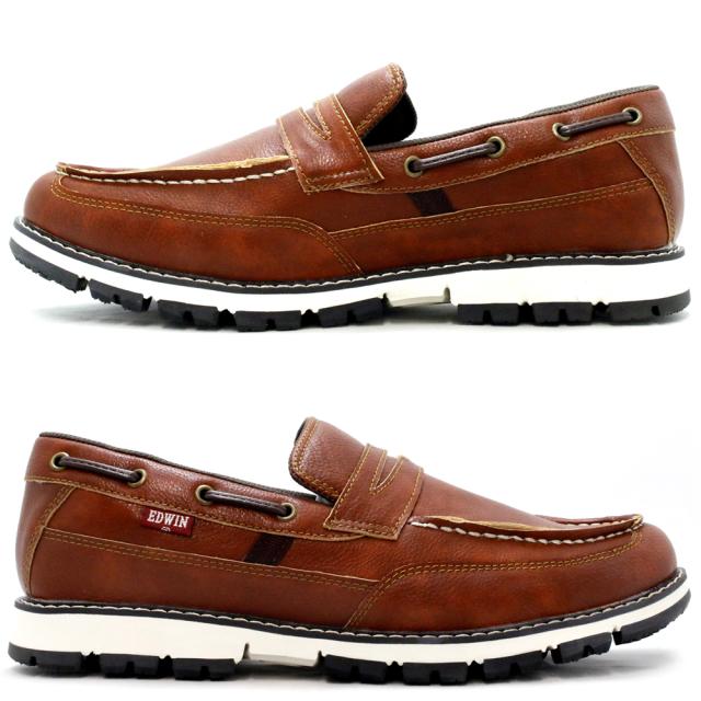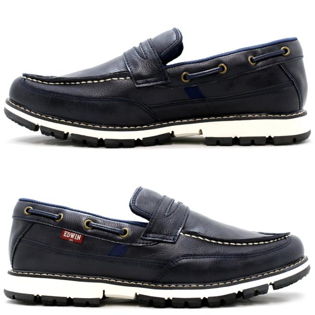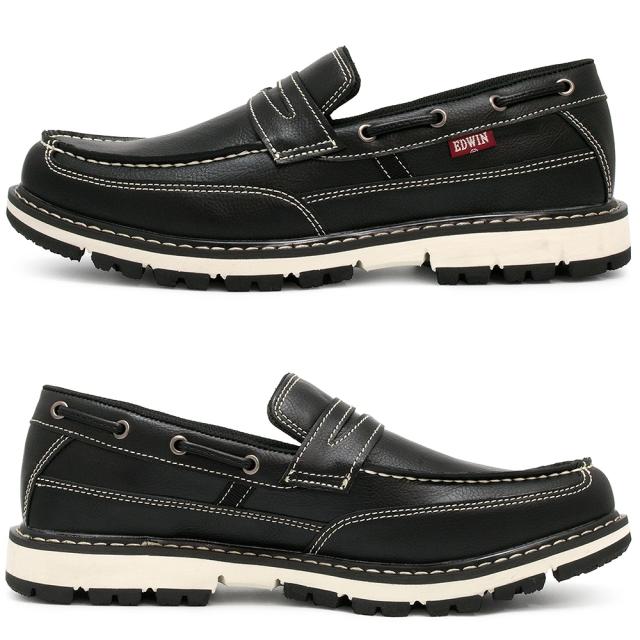 ローファー メンズ 革靴 スニーカー スリッポン デッキシューズ 防水 耐滑底 紐なし おしゃれ 紳士靴 EDWIN エドウィン edm4103|正規販売店