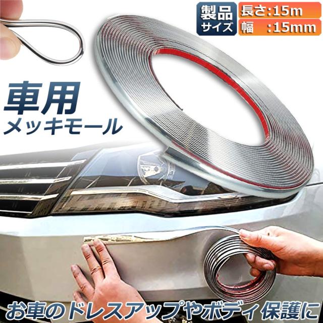 車用 メッキモール マルチモール ボディー バンパー 保護 プロテクター フェンダーモール クロムメッキ インテリア ドアモール 両面テープ 幅15mm 長さ15m 汎用 シルバー