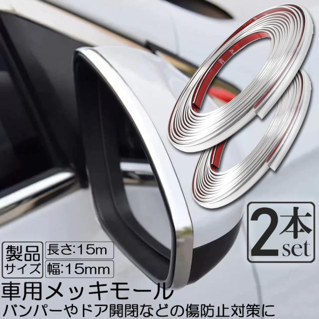 車用 メッキモール 2本セット マルチモール ボディー バンパー 保護 プロテクター フェンダーモール クロムメッキ インテリア ドアモール 両面テープ 幅15mm 長さ15m 汎用 シルバー