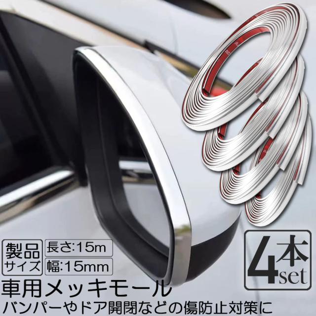 車用 メッキモール 4本セット マルチモール ボディー バンパー 保護 プロテクター フェンダーモール クロムメッキ インテリア ドアモール 両面テープ 幅15mm 長さ15m 汎用 シルバー