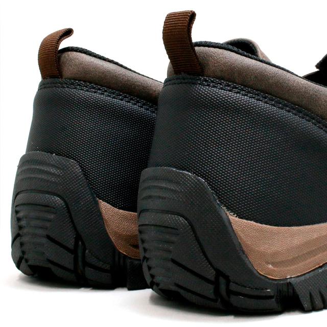 トレッキング対応 スリッポンタイプのモックシューズ。 シンプルなアッパーザインと実用性に優れた本格アウトソール機能を併せ持ったアウトドアシューズ。アウトドア人気とともに注目されている流行のモックシューズはファッション性が高く、街中での普段履きにもオススメです。防水フィルムを施したライニング生地で、地面からの浸水を防ぐ防水設計でポイントが高い。本格仕様のアウトソール靴底はグリップ溝も深く安定性と耐滑性に優れた設計に。カジュアルな街履きタウンユーズからキャンプ、音楽フェスにハイキング、トレッキングまでアウトドアフィールドにおけるパフォーマンス性の高さと日常の実用性を兼ね備えた凡庸性の高い1足に仕上がりました。