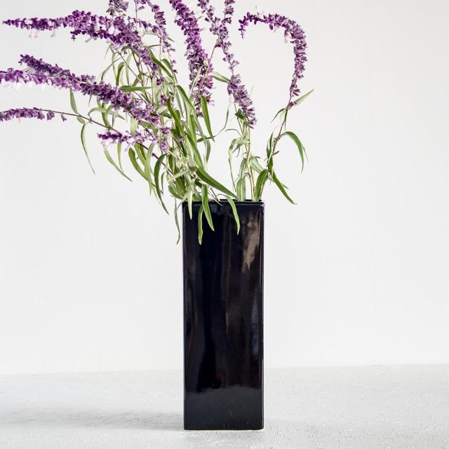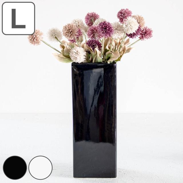 花瓶 モノトーンフラワーベース 陶器 幅10×奥行10×高さ30cm ( フラワーベース 花びん 花器 ベース ロング 四角 花 飾る 花入れ 生花 花束 ドライフラワー グリーン インテリア スクエア ツヤあり モノトーン スリム おしゃれ )