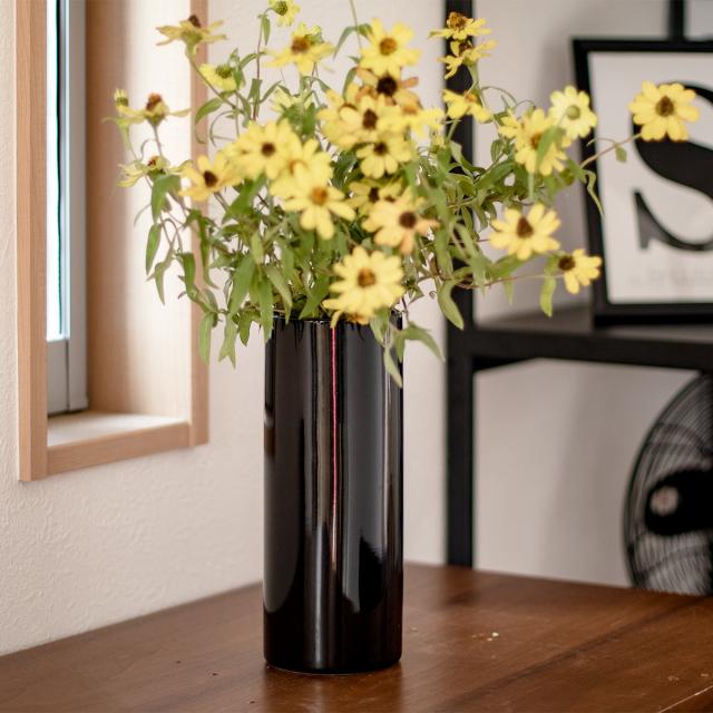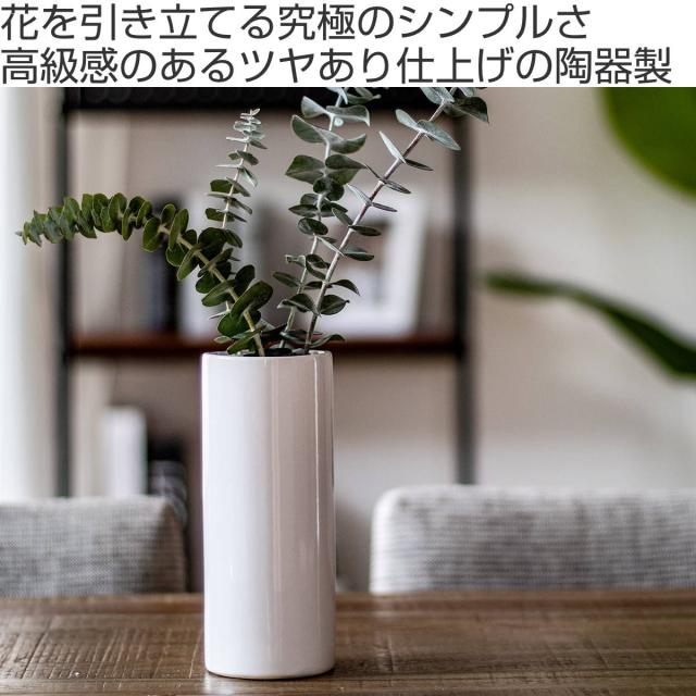 花瓶 モノトーンフラワーベース 陶器 直径9×高さ24cm ( フラワーベース 花びん 花器 ベース ロング 円柱 丸 シリンダー 花 飾る 花入れ 生花 花束 ドライフラワー グリーン インテリア ツヤあり モノトーン スリム おしゃれ )