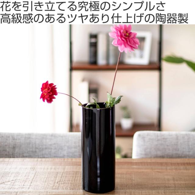 花瓶 モノトーンフラワーベース 陶器 直径7×高さ18cm ( フラワーベース 花びん 花器 ベース ロング 円柱 丸 シリンダー 花 飾る 花入れ 生花 花束 ドライフラワー グリーン インテリア ツヤあり モノトーン スリム おしゃれ )