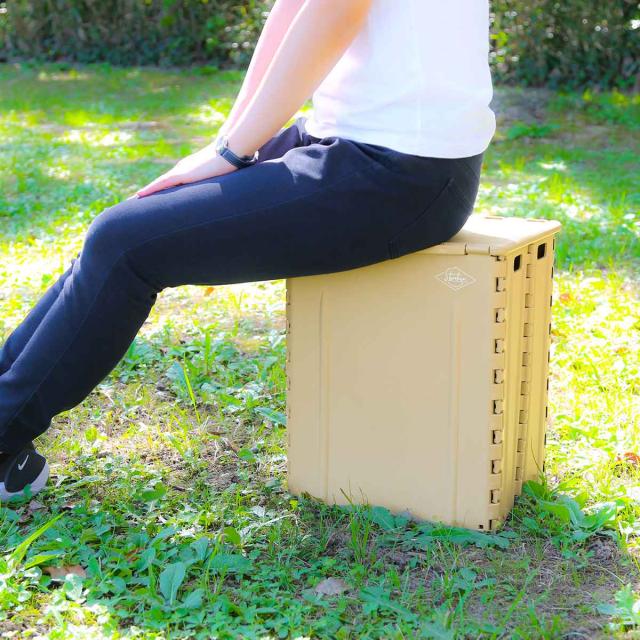 - 折りたためて場所を取らず、いろいろな用途に使えそうです。 素材はよく見かける折りたたみ踏み台と同じ硬いプラスチック製なので、少しぐらいの雨なら大丈夫そうだし、玄関のドア前で簡易な置き配ボックスにもなりそうだし、ガーデニング用品のちょい置きや休憩時の椅子にも良いし、車に入れておいても邪魔にはならずちょっとした荷物を入れたりも出来そうです。 カーキ色を選びましたが室内でも屋外でもおしゃれに映える感じでかわいいです。