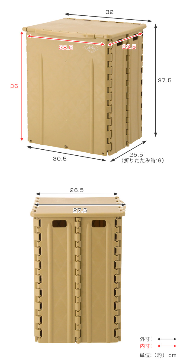 | サイズ | 外寸:約 幅32×奥行27.5×高さ37.5(cm) 内寸:約 幅28.5×奥行23.5×高さ36(cm) 折りたたみサイズ:約 幅32×奥行6×高さ37.5(cm) |