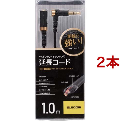 エレコム ヘッドホン・イヤホン用延長コード ブラック 1m EHP-35ELS10BK(2本セット)[ヘッドホン・イヤホン]