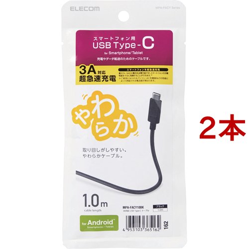 エレコム Type-Cケーブル やわらかい 1.0m ブラック MPA-FACY10BK(2本セット)[変換アダプター・ケーブル類]