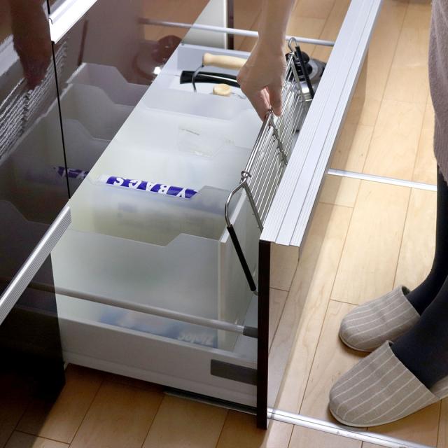 最小幅にするとコンパクトなサイズ感なので省スペースで収納が可能です。使用しないときは、キッチンの空いている隙間に収納できるので場所をとりません。