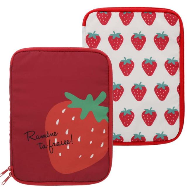 かわいい苺プリントのメッシュポケット付きマルチケース