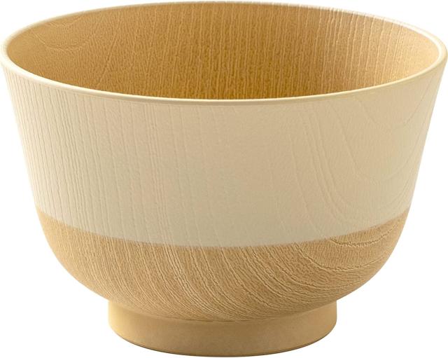 ●樹脂製ながら、まるで天然木のような木目。軽くて割れにくい優秀なお碗です。●軽くて持ちやすく、高台に軽く指がかかります。