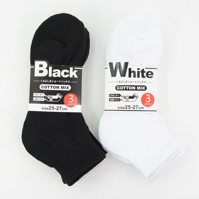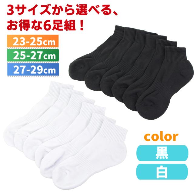 靴下 メンズ くるぶし丈 ショート ソックス 6足組 底厚パイル ミドル丈 23-25cm 25-27cm 27-29cm 白 黒 紳士 男性 【メール便送料無料】 ホワイト ブラック 無地 ショート丈 ビジネス スクールソックス くつした くつ下 靴下 学校 学生 通勤 男女兼用 agesugi_sfa