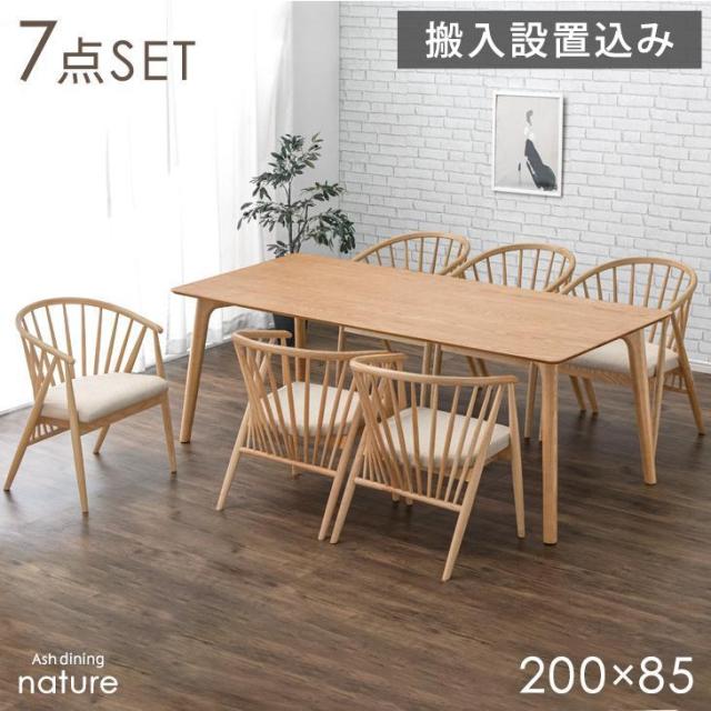 【テーブル搬入設置込】 和モダン ダイニングテーブルセット 6人掛け 7点セット 200cm ダイニング テーブル セット ダイニングセット ダイニングテーブル 肘 デザイナーズチェア おしゃれ 6人 北欧 木製 【超大型】【後払/時間指定NG】