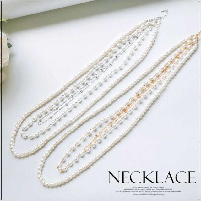 交換無料&レビュー特典 パールネックレス ロング フォーマル アクセサリー 2連 華奢 パール レディース ゴールド シルバー emile0183 二次会 同窓会 成人式 結婚式 披露宴 入学式 卒業式