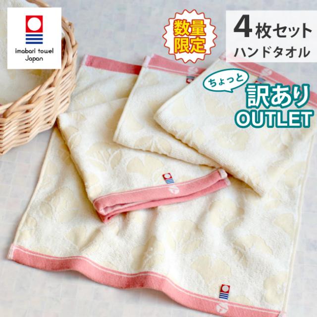 今治タオル 四季の花織 ハンドタオル 【4枚セット】 訳あり お買い得 まとめ買い お値打ち品 リーズナブル 在庫処分 数量限定 花柄 日本製 国産 パイル 綿100% 乾きやすい 今治 34×35cm ウォッシュタオル ハンカチ おしゃれ かわいい イエロー タオル 顔用 手洗い