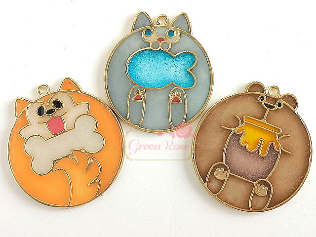 レジン枠 まんまるあにまる 全3種 10個 GreenRoseオリジナルフレーム 猫 犬 熊 動物 アニマル チャーム 空枠 セッティング アクセサリーパーツ j6-4433 4434 4435