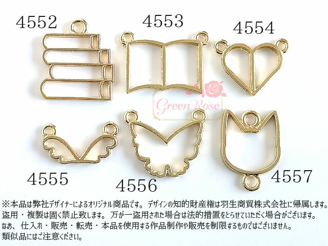 レジン枠 小さめ コネクター 全6種 10個 GreenRoseオリジナルデザイン チャーム 空枠 j6-4552-4557